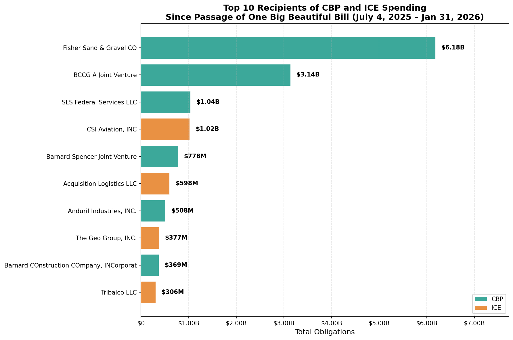 Figure 4 shows the top 10 recipients of CBP’s and ICE’s post-OBBA spending.
